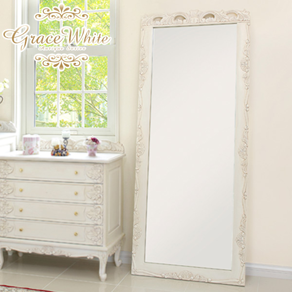 ■ミラー 姿見 アンティーク風 スタンドミラー 鏡 全身 姿見鏡 おしゃれ 白 グレイスホワイト 猫脚 ワイドミラー アンティーク風 ミラー