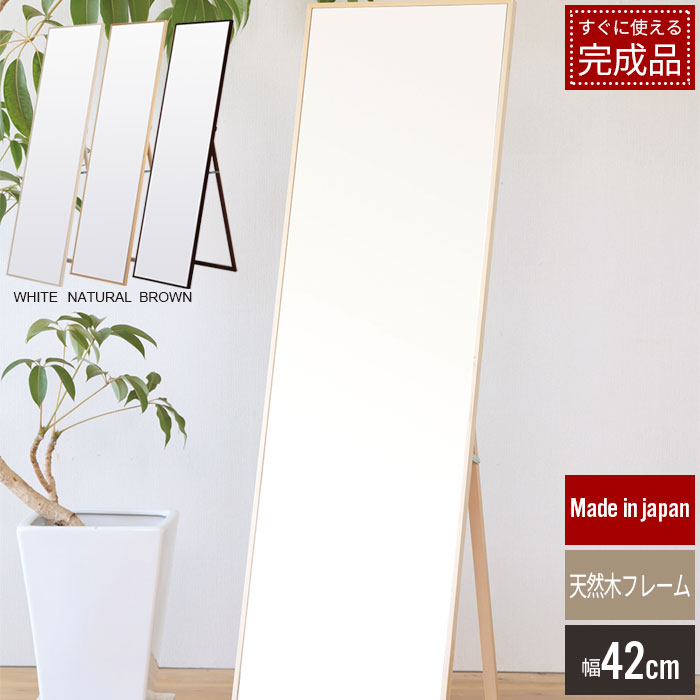 ■【値下げ】スタンドミラー 全身 姿見 おしゃれ シンプル 人気 飛散防止 天然木 細枠 42cm
