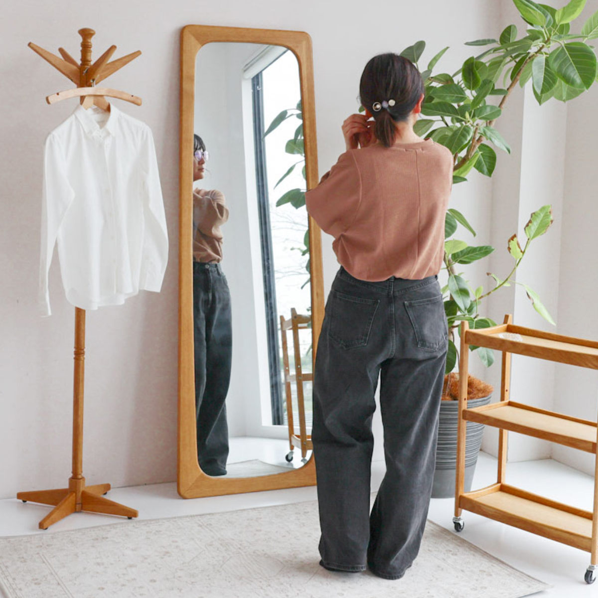 ■ミラー 全身 姿見鏡 幅62×高さ172cm 木製フレーム 立てかけタイプ Herit ( 鏡 姿見 全身鏡 天然木 北欧インテリア 完成品 北欧 ナチュ