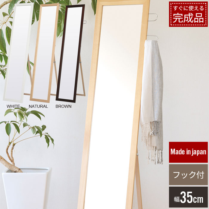 ■【値下げ】スタンドミラー 全身 姿見 おしゃれ フック付き シンプル 人気 飛散防止 細枠 35cm