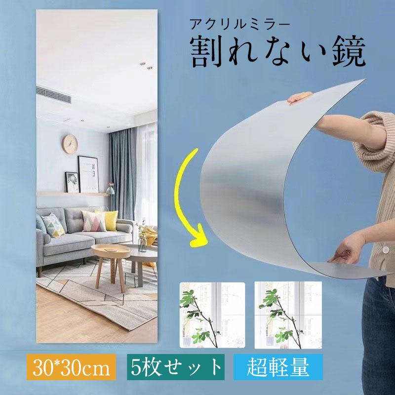 送料無料 コンパクト最高!鏡 全身鏡 姿見 壁掛け 柔らかい鏡 割れない鏡 風呂 浴室 (30×30cm 5枚セット) プレジュール 超軽量