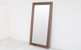 全身をしっかりと映すことのできる、置き型姿見(全身鏡・フルレングスミラー)です。ウォールナット無垢材を前面のフレームに使用しています。フレームはやや面を広く取り、チョコレートブラウンで品が良く、人気の高いウォールナット材の魅力をたっぷりとご堪能いただけます。シンプルなデザインだからこそ、インテリアにも最適!ワイドタイプでしっかりと確認できるのがうれしいところ!※お届けはミラー1個のみとなります。その他小物・備品は付属いたしません。この商品は愛媛県西条市の家具工房・近藤工芸が製作しております。こだわりの逸品をぜひご堪能ください。【注意事項】●完全受注生産につき、お届けまでお時間を頂戴致します。●天然木のため、その都度、木目・色味・節・白太・入皮等の風合いが異なります。●また、反