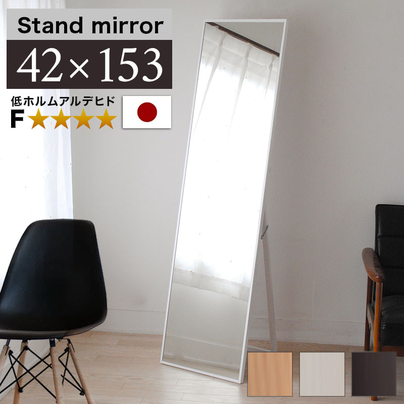 ■スタンドミラー 細枠 幅42cm 天然木 北欧風 日本製 ナチュラル 鏡 全身鏡 姿見 高級感 木製 ワイド nag-nk-3 店舗 カフェ ラウンジ ロビ