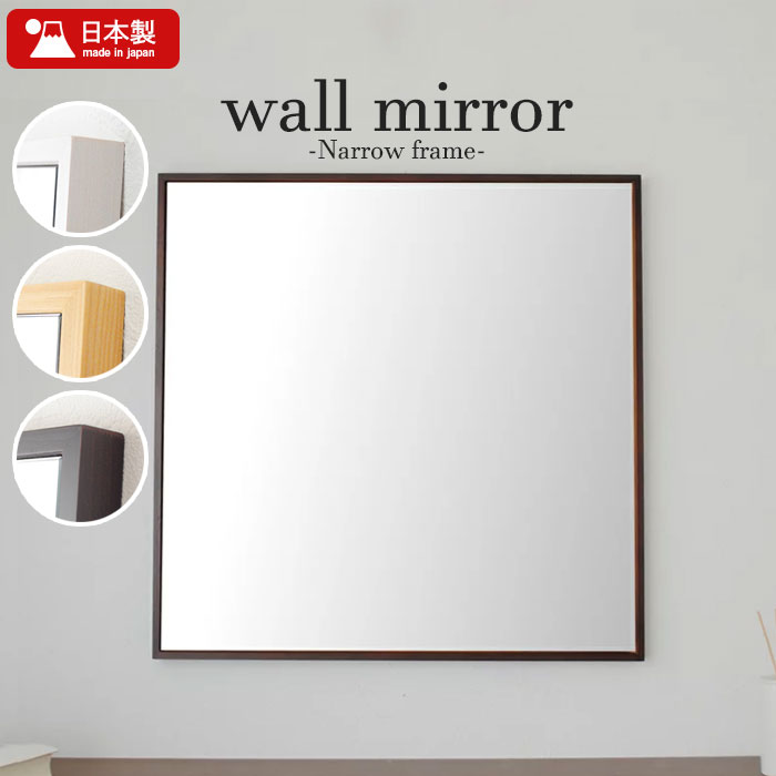 ■【値下げ】壁掛け ミラー 60 正方形 細枠 ウォールミラー 鏡 壁掛けミラー 姿見 ミラー 木製 フレーム 幅60 天然木 木製 日本製 北欧 お