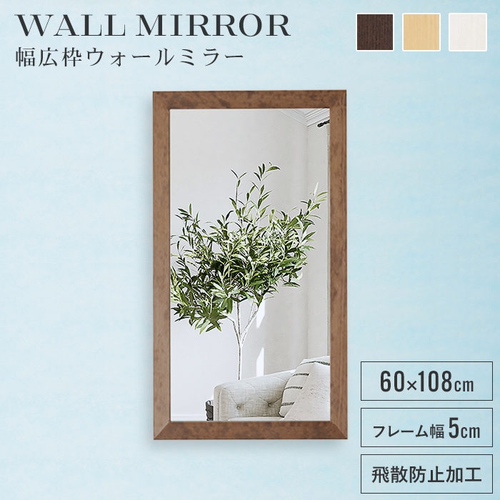 幅広の木枠フレームが印象的でスタイリッシュなスクエアタイプ。無垢材にこだわり木枠にはツガ材を使用。5cm幅の木枠とミラー面は、ほぼフラットで見た目に美しく、ミラーに枠の映り込みがほとんどないのが特徴です。■ 同シリーズ ■● 幅広枠ウォールミラー(60×108)● 幅広枠ウォールミラー(38×130)● 幅広枠ウォールミラー(55×80)● 幅広枠ウォールミラー(54×130)● 幅広枠ウォールミラー(40×161)● 幅広枠ウォールミラー(50×161)※このページは[幅広枠ウォールミラー(60×108)]を販売しております。