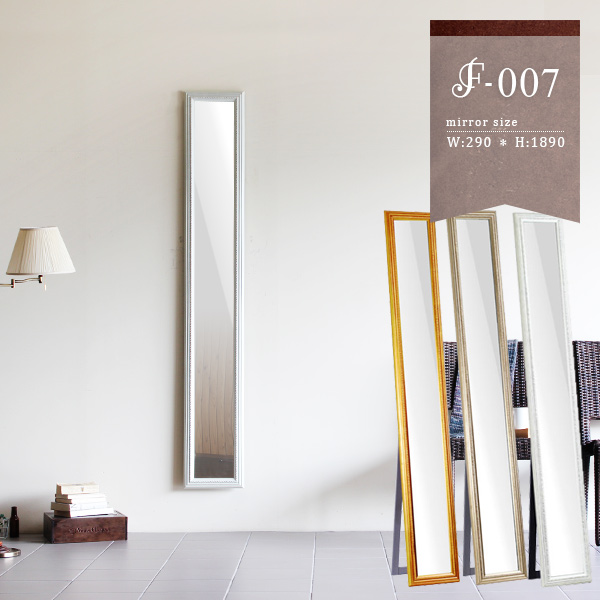 F-007SM2018サイズ:幅290 奥行45 高さ1890 mmスタンド時奥行:500mmミラー部サイズ:幅190 高さ1800 mmミラー厚:5mm梱包サイズ:約幅320 奥行70 高さ1960 mm材質:本体木製、ポリレジン樹脂 仕上げゴールド:銅箔/シャンパンゴールド:アルミ箔コーティングの上からラッカー塗装/ホワイト:ラッカー塗装カラー:3色本体重量:7.5kg日本製完成品飛散防止処理(背面)壁掛け用フック・掛ひも付属ご注文状況により納期に変動がございます。最新の納期情報はカラー選択時にご確認ください。※オーダー商品につき、ご注文のキャンセル・変更につきましてはお届け前でありましても生産手配が済んでいるためキャンセル料(商品代金の50%)を頂戴いたします。※北海道・沖縄・離島は送料別途お見積り【ご注意】離島・郡部など一部配送不可地域あり。不可地域は通常配送便での玄関渡し建物の形態によっては別途追加料金を頂戴する場合あり吊上作業などが必要な場合、追加料金はお客様ご負担確認不十分などの理由による返品・返金不可商品・搬入経路のサイズ等充分にご確認願います0000a02559/00