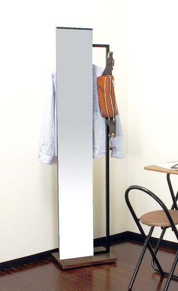 ■スタンドミラー ハンガーラック 低い コートハンガー ブラウン 茶色 ( 全身鏡 姿見 鏡 ミラー 壁掛け フレーム 吊鏡 全身 )