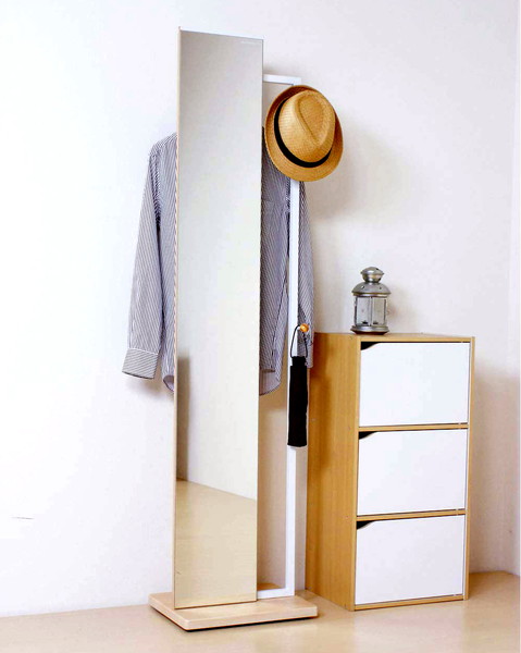 ■スタンドミラー ハンガーラック 低い コートハンガー ナチュラル ( 全身鏡 姿見 鏡 ミラー 壁掛け フレーム 吊鏡 全身 )