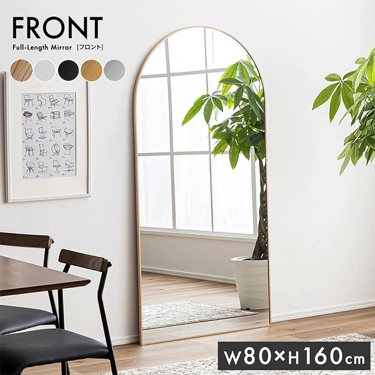 ■鏡 スタンドミラー 姿見 全身鏡 おしゃれ アーチ型 80x160cm Front(フロント) 5色対応 ミラー 全身ミラー かがみ 壁掛け 立て掛け 大型