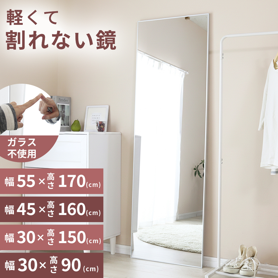 ■割れないミラー 完成品 全身鏡 割れない鏡 超軽量 鮮明 つなぎ目なし ミラー 鏡 高さ 170cm 幅 55cm 姿見 全身 軽い 割れない フィルムミ