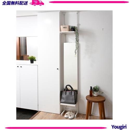 ■[山善] 突っ張り ラック ミラー 姿見 スリム 玄関 収納 省スペース 鏡 かばん置き 収納棚 幅32×奥行28×高さ200-260cm 姿見鏡 組立品 ホ
