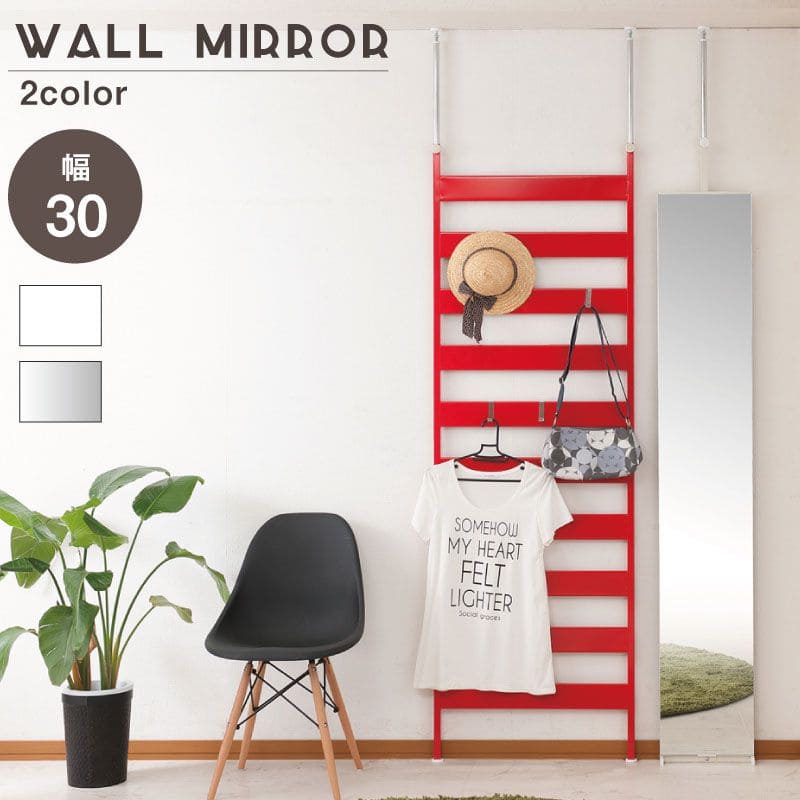■鏡 ミラー 突っ張り 姿見 全身 ラック リビング 一人暮らし 30 薄型 コンパクト 玄関 日本製 つっぱり アイアン 枠なし スタンド おしゃ