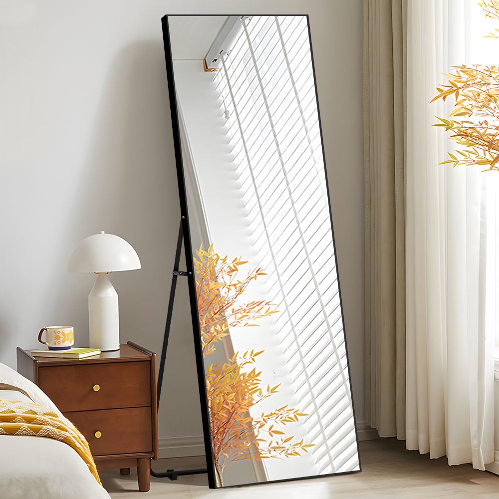 OSJ 全身鏡 姿見鏡 スタンドミラー アルミ 直角 強化ガラス 壁掛けミラー 立てかけ 姿見 鏡 ミラー おしゃれ 大型 飛散防止 160*50CM ブラック