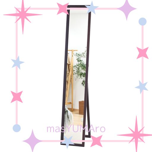 ■不二貿易 姿見 全身鏡 スタンドミラー 飛散防止加工 ルームミラー 木製 折りたたみ 一人暮らし 単身 幅27×奥行39×高さ147.5CM ブラウン