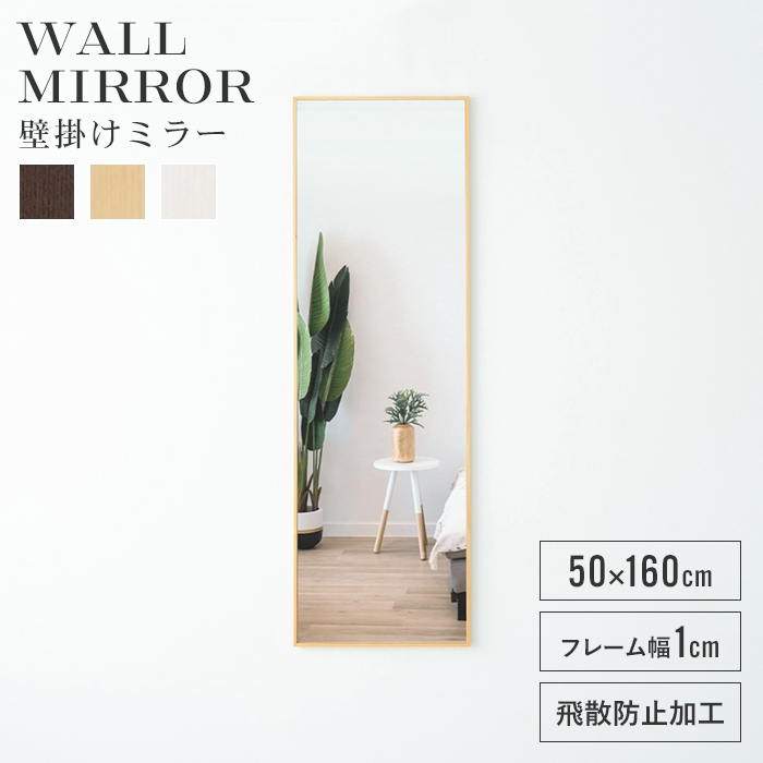 ■【値下げ】ウォールミラー 鏡 姿見 全身 壁掛けミラー 高さ160 幅50 壁掛け鏡 おしゃれ 北欧 インテリア ナチュラル モダン 完成品