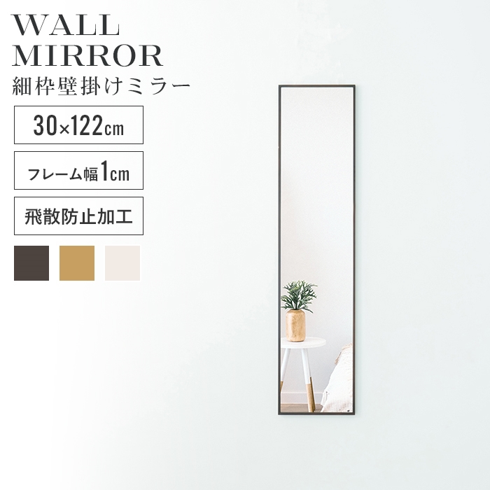 ■【値下げ】ウォールミラー 姿見 鏡 スリム 高さ122 幅30 北欧 日本製 壁掛けミラー 吊り下げ 全身 全身鏡 幅細枠 おしゃれ 完成品