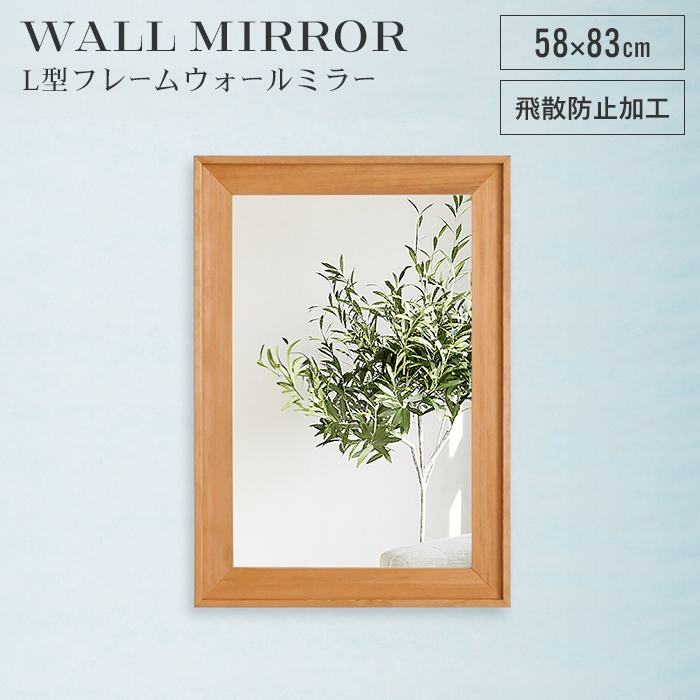 【日本製】無垢材の良さを存分に味わうことのできるウォールミラー。表情豊かな天然木を贅沢に使った存在感のあるL型フレームが特徴。天然木ならではの木の美しさや風合いが温かみのある上質な空間を演出します。掛ける場所も位置も自由に設置できるから、欲しい場所に気軽に取り入れられて省スペース。壁に掛けるだけでなく、床置きやチェストの上などに置くのもおすすめ。お部屋を広く明るく見せる効果もあるので、空間に映えるインテリアとしても。キーワード: ウォールミラー 長方形 幅58cm 鏡 ミラー 姿見 飛散防止 日本製 木製 フレーム 木目調 ワンルーム 玄関 洗面所 おしゃれ 壁掛けミラー 壁掛け鏡 かがみ 壁掛け 58×83cm 飛散防止加工 金具 立て掛け 省スペース ウッドフレーム 木枠 角型 インテリア 額縁風 高級感 北欧風 ナチュラル ブラウン