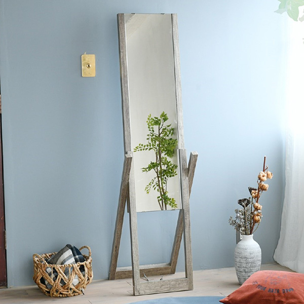 優しい色調で味わい深い古木風シートと美しい強化ガラスを組み合わせたデザインが、お部屋全体にすっきりとした印象を与える幅90cmのオープンラック。圧迫感のないシンプルなデザインは、お気に入りの小物や観葉植物、ドライフラワーなどを一層際立たせてくれます。全身を映してくれるミラーはお出かけ前の必需品。フック部分にはストールや帽子などを掛けられます。