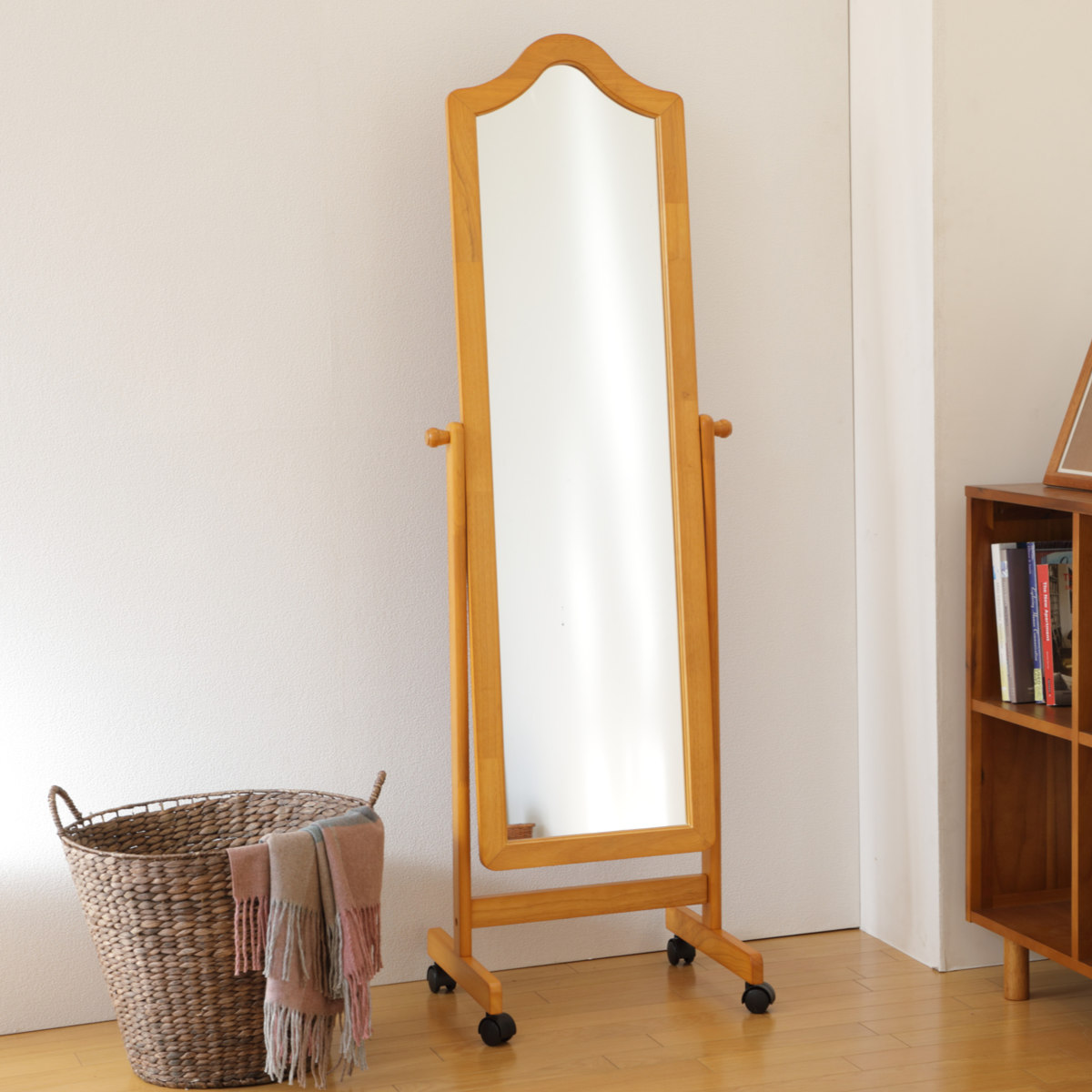 ■スタンドミラー 姿見 木製 約幅50cm ( ミラー 全身鏡 鏡 かがみ 全身ミラー キャスター キャスター付き 飛散防止 玄関 リビング 洗面所