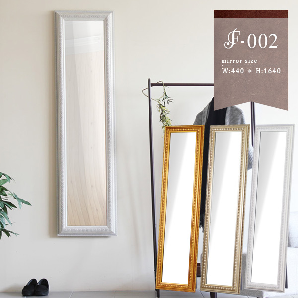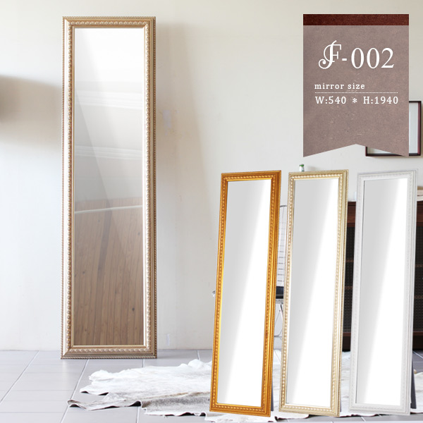 F-002SM3015サイズ:幅440 奥行60 高さ1640 mmスタンド時奥行:410mmミラー部サイズ:幅290 高さ1500 mmミラー厚:5mm梱包:幅490 奥行90 高さ1720 mm材質:本体木製、ポリレジン樹脂 仕上げゴールド:銅箔/シャンパンゴールド:アルミ箔コーティングの上からラッカー塗装/ホワイト:ラッカー塗装カラー:3色本体重量:11.5kg日本製完成品飛散防止処理(背面)壁掛け用フック・掛ひも付属ご注文状況により納期に変動がございます。最新の納期情報はカラー選択時にご確認ください。※オーダー商品につき、ご注文のキャンセル・変更につきましてはお届け前でありましても生産手配が済んでいるためキャンセル料(商品代金の50%)を頂戴いたします。※北海道・沖縄・離島は送料別途お見積り【ご注意】離島・郡部など一部配送不可地域あり。不可地域は通常配送便での玄関渡し建物の形態によっては別途追加料金を頂戴する場合あり吊上作業などが必要な場合、追加料金はお客様ご負担確認不十分などの理由による返品・返金不可商品・搬入経路のサイズ等充分にご確認願います0000a02568/0000a