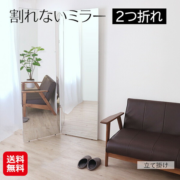 ■【割れないミラー 2つ折れ 60+60×180】【送料無料】 割れない鏡 全身 立て掛け 姿見 フィルムミラー 全身鏡 大型ミラー 軽量 割れない