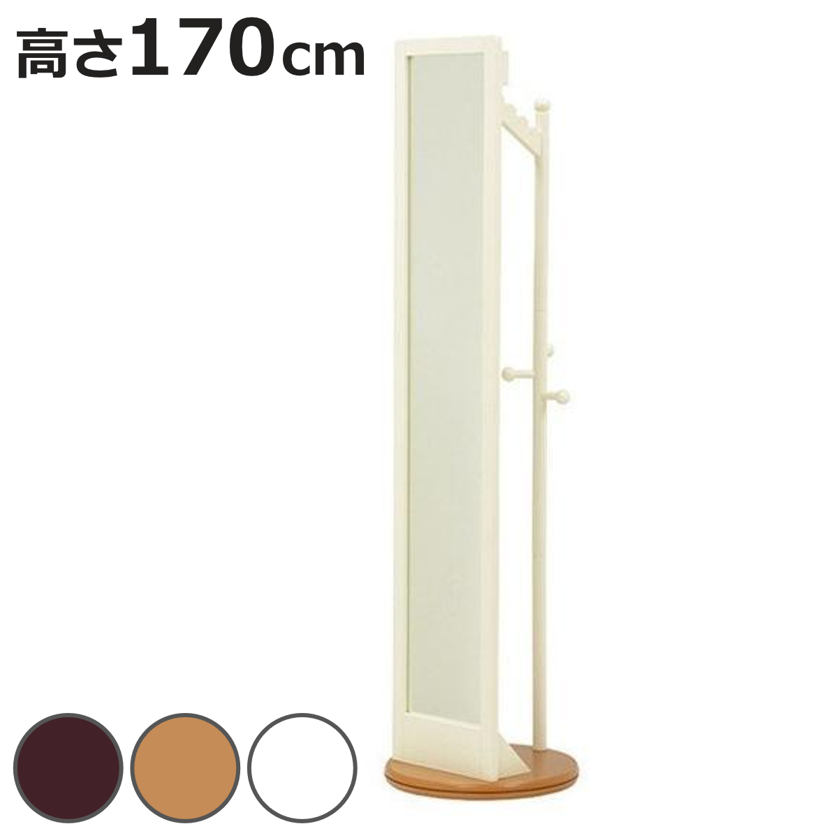■スタンドミラー 高さ170cm 回転 ハンガー付き ( ポールハンガー 木製 コートハンガー 鏡 姿見 ミラー ハンガーラック かがみ 全身鏡 全