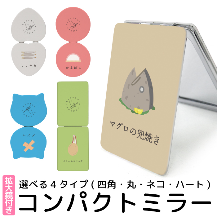 ■コンパクトミラー 折りたたみ 鏡 コンパクト ミラー 拡大鏡 付 携帯ミラー デザイン プリント ハンドミラー 二つ折り 手鏡 丸型ミラー 両