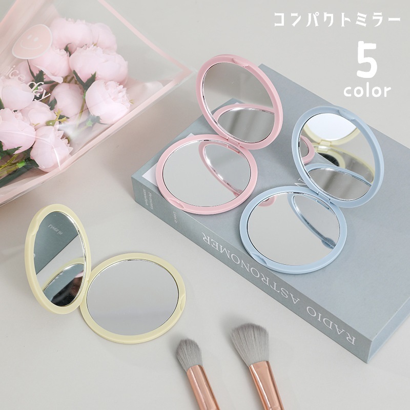 ■コンパクトミラー 手鏡 ハンドミラー 折りたたみ 持ち運び 携帯 丸型 鏡 化粧直し 身だしなみ 2面 両面 サークル まる シ