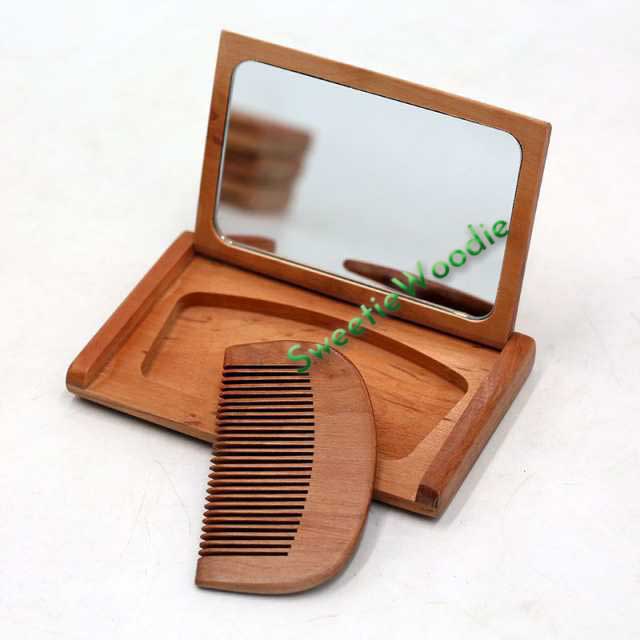 ■送料無料 ミラー&コーム 手鏡 コンパクトミラー ハンドミラー コーム くし 櫛 ブラシ 木製 髪 ヘアアレンジ 身だしなみセット 持ち運び