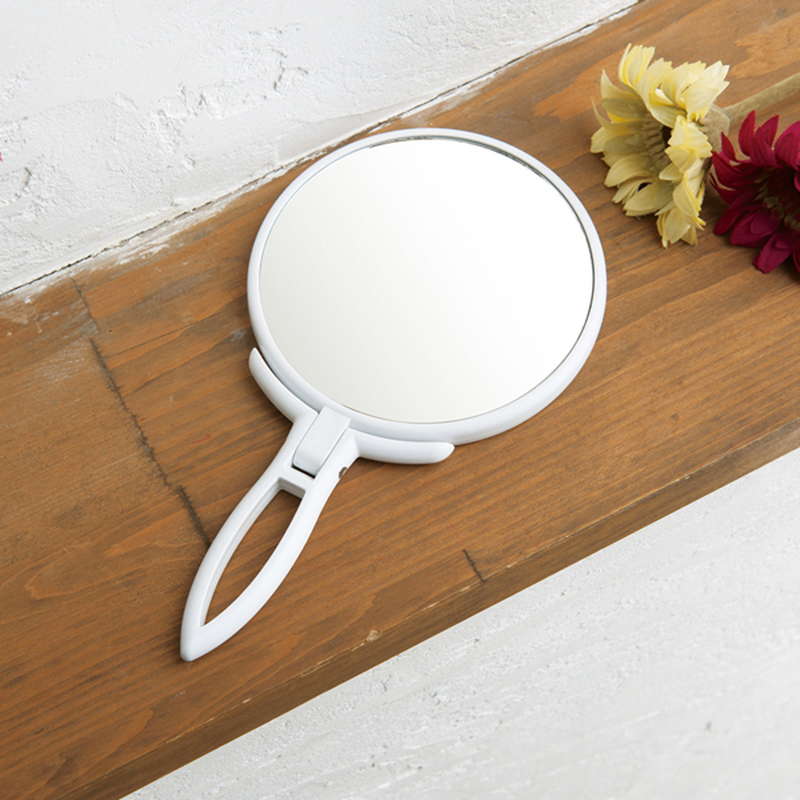 ■手鏡 ハンドミラー 拡大鏡 3倍鏡 2way 卓上スタンドミラー 折りたたみ コンパクト 幅12cm