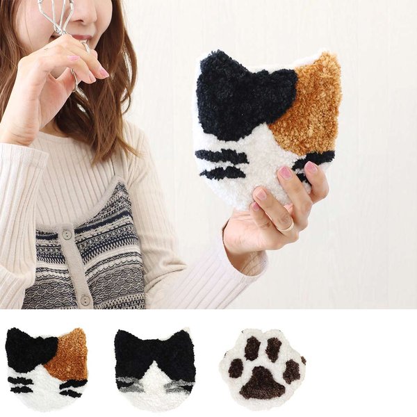 ■猫グッズ ネコ雑貨 手鏡 タフティング ミラー おしゃれ もこもこ フレーム
