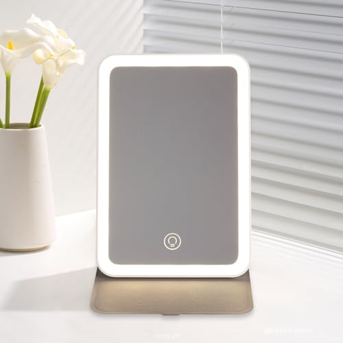 ■折りたたみミラー LED化粧鏡 卓上ミラー 手鏡 USB充電式 タッチパネル操作 明るさ調節可能 女優鏡 スタンドミラー 持ち運びに便利 シン