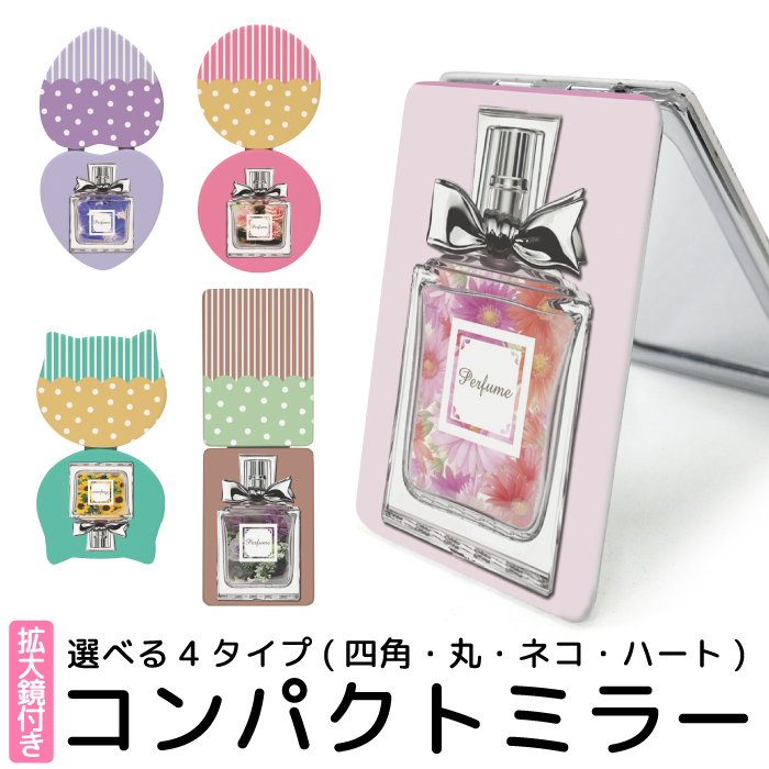 ■コンパクトミラー 折りたたみ 鏡 コンパクト ミラー 拡大鏡 付 携帯ミラー デザイン プリント ハンドミラー 二つ折り 手鏡 丸型ミラー 香