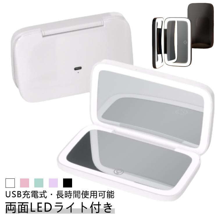 ■3色調光 5倍鏡 コンパクトミラー 拡大鏡 卓上 手鏡拡大鏡 手鏡 両面 LED ライト付き 女優鏡 女優ミラー 3色調光 無段階明るさ調整 USB 充