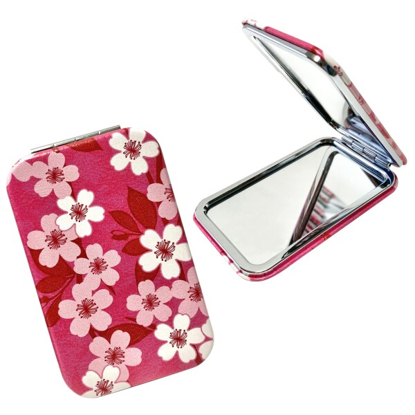 ■コンパクトミラー 手鏡 携帯 折りたたみミラー ハンドミラー 等倍 & 拡大2倍 かわいい 桜柄 (桜デザインJ)