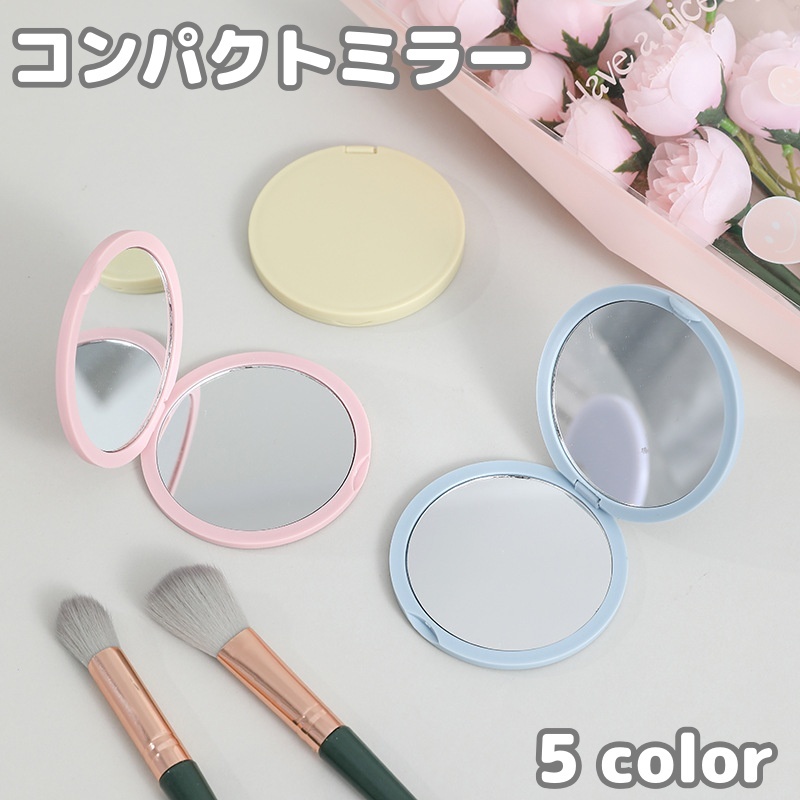 ■コンパクトミラー 折りたたみ 手鏡 携帯用 2倍 丸型 ラウンド 小型 ミニ 磁石 化粧直し メイク直し 持ち運び かわいい お