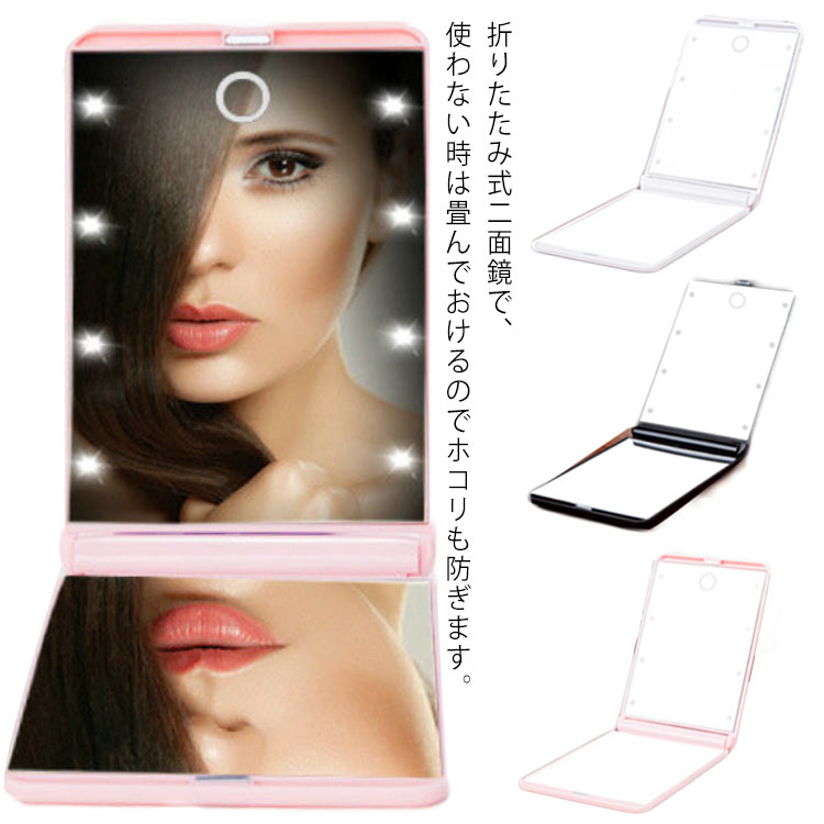 ■ミラー ライト付き 手鏡 化粧鏡 led 送料無料 ミラー 折り畳み ミラー 折りたたみ 持ち運び おしゃれ ハンドミラー 拡大鏡 ledライトミラ