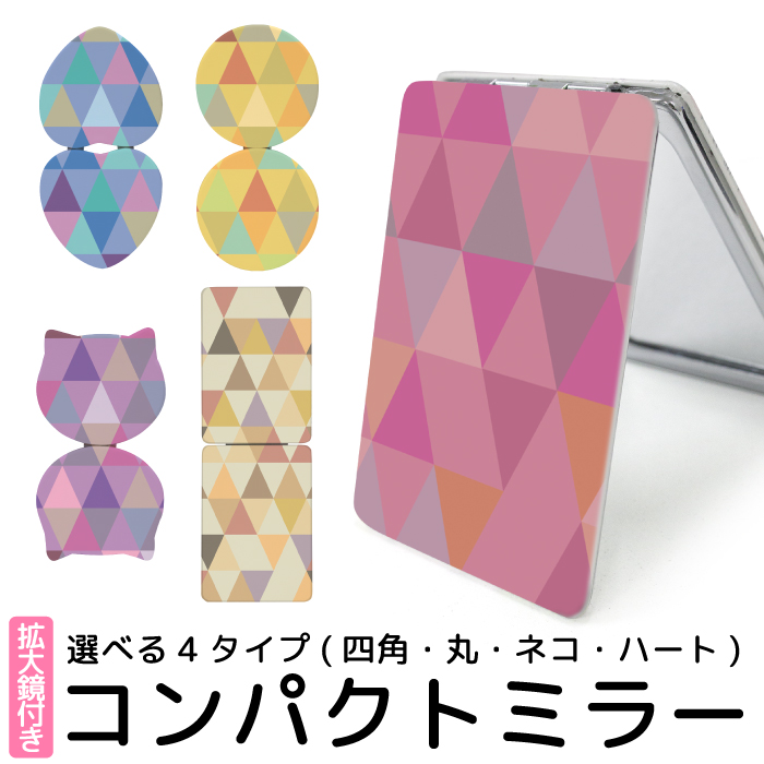 ■コンパクトミラー 折りたたみ 鏡 コンパクト ミラー 拡大鏡 付 携帯ミラー デザイン プリント ハンドミラー 二つ折り 手鏡 丸型ミラー 両