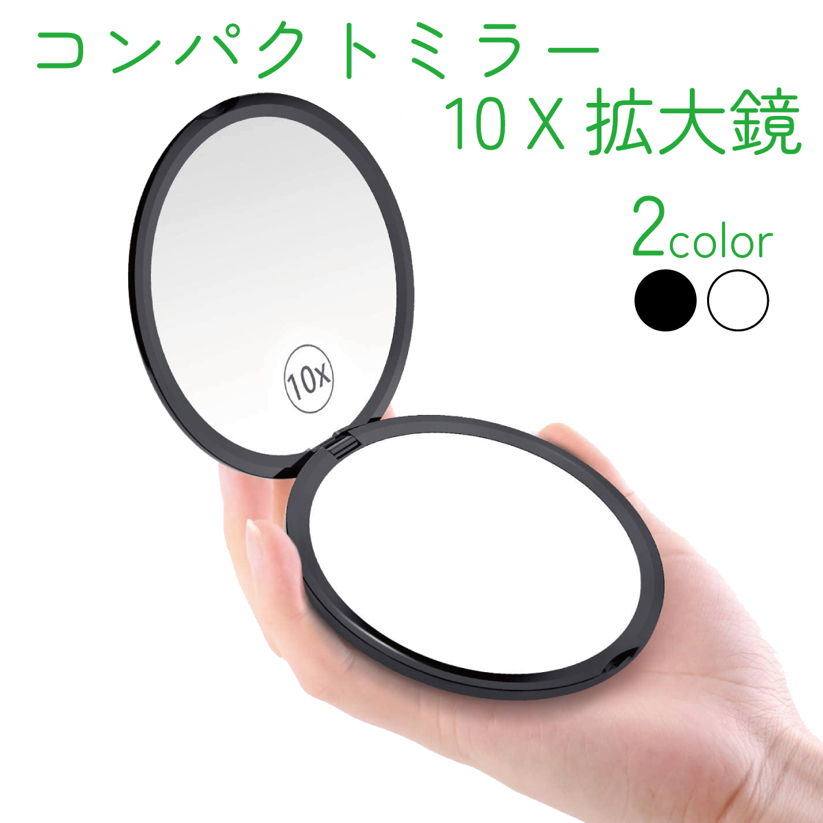 丸型のシンプルなフォルムの 折り畳みミラー 10倍拡大鏡と等倍鏡が一緒になっています。 180°開閉でき、角度調整可能 軽量で手のひらサイズ 10センチ×厚み1.4センチ 95グラム 化粧ポーチやカバン・ハンドバッグの中でも かさばらず、すぐ取り出して化粧直しができます。 10倍拡大鏡付で、アイラインや眉毛チェック、化粧直しにベンリ。 外出中はもちろん、お家の化粧台、洗面台でのスキンケアに 普段使いとしても飽きの来ないデザイン 艶のある光沢で、シンプルなアイテム。 通勤、通学、出張先、ビジネスからプライベート パーティーにもお役立ち。 誕生日、入学祝、卒業祝い、出産祝い、母の日 ホワイトデー、ちょっとしたプレゼント、ギフトに ※ラッピングサービスは取り扱っておりません。予めご了承ください。