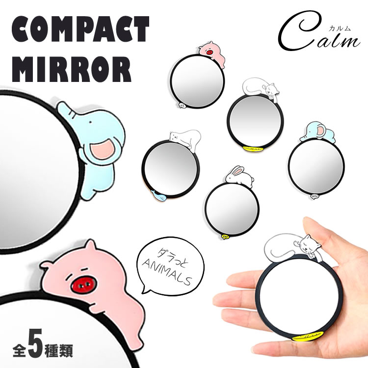 ■ダラっとアニマルズ 手鏡 コンパクトミラー ネコ うさぎ ブタ ゾウ しろくま ペア お揃い アニマル 動物 かわいい 軽量 スリム 取っ手付
