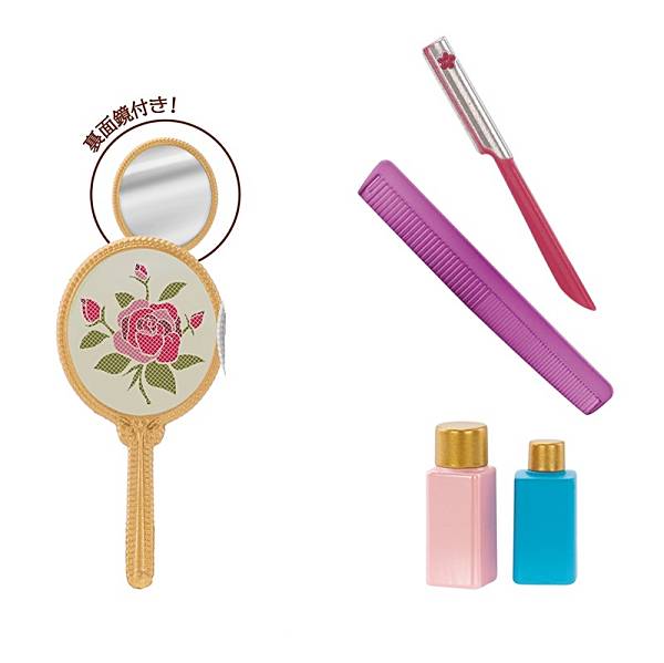 ■【長柄カミソリ ビューティーM<貝印株式会社>化粧ボトル・コーム・手鏡(ゴールド)】昭和ノスタルジックシリーズ おかあさんの想い出