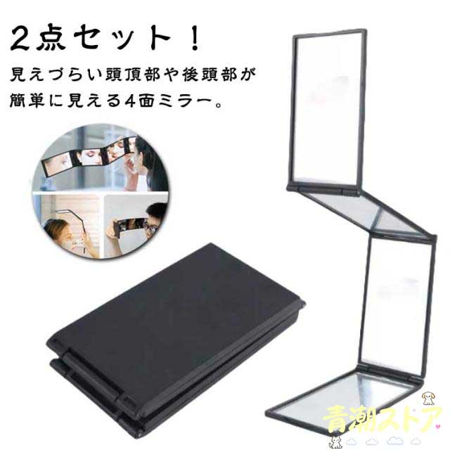■多面鏡 折りたたみミラー 手鏡 コンパクトミラー ミラー 髪染め 卓上ミラー 2個セット 4面鏡 手鏡 メイク 後頭部や頭頂部が確認しやすい