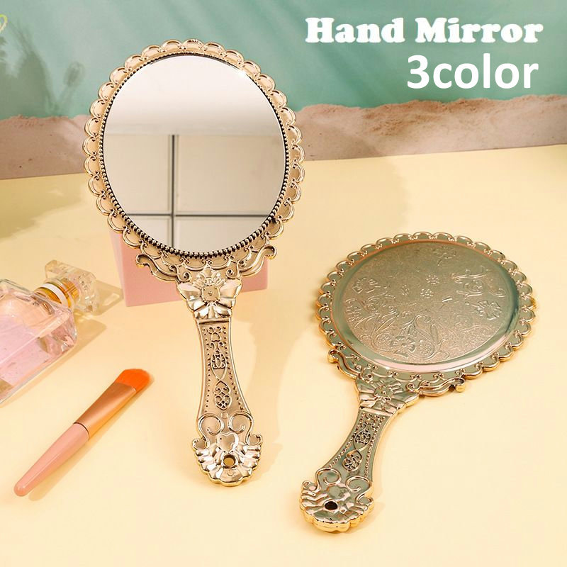 ■手鏡 ハンドミラー レディース 鏡 ミラー アンティーク ゴールド コンパクト 手持ち おしゃれ かわいい お姫様 プレゼント