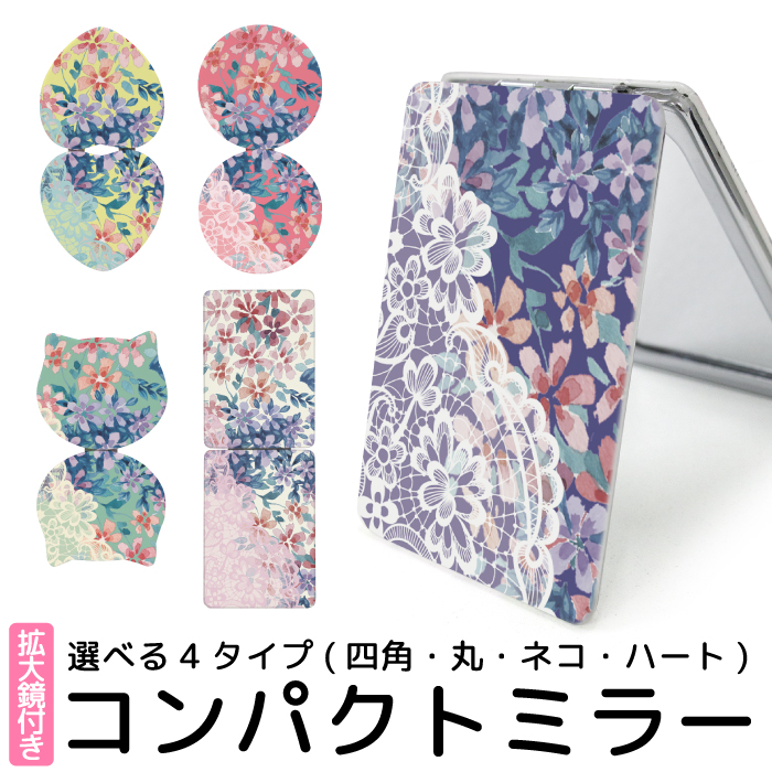 ■コンパクトミラー 折りたたみ 鏡 コンパクト ミラー 拡大鏡 付 携帯ミラー デザイン プリント ハンドミラー 二つ折り 手鏡 丸型ミラー 両