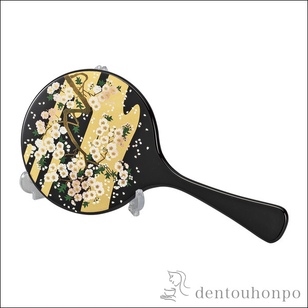 ■手鏡 雅桜 スタンド付 ( 名入れ有料 ハンドミラー コンパクト お土産 記念品 アンティーク 山中漆器 結婚 出産 内祝い 引き出物 金婚式 )