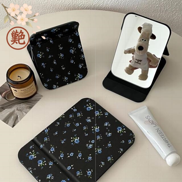 ■小花柄 持ち運び可能 持ち運び鏡 卓上ミラー 卓上鏡 角度調整自在 コンパクトミラー 大きい鏡面 かがみ 鏡 手鏡 ミラー 角度調整自在 ス