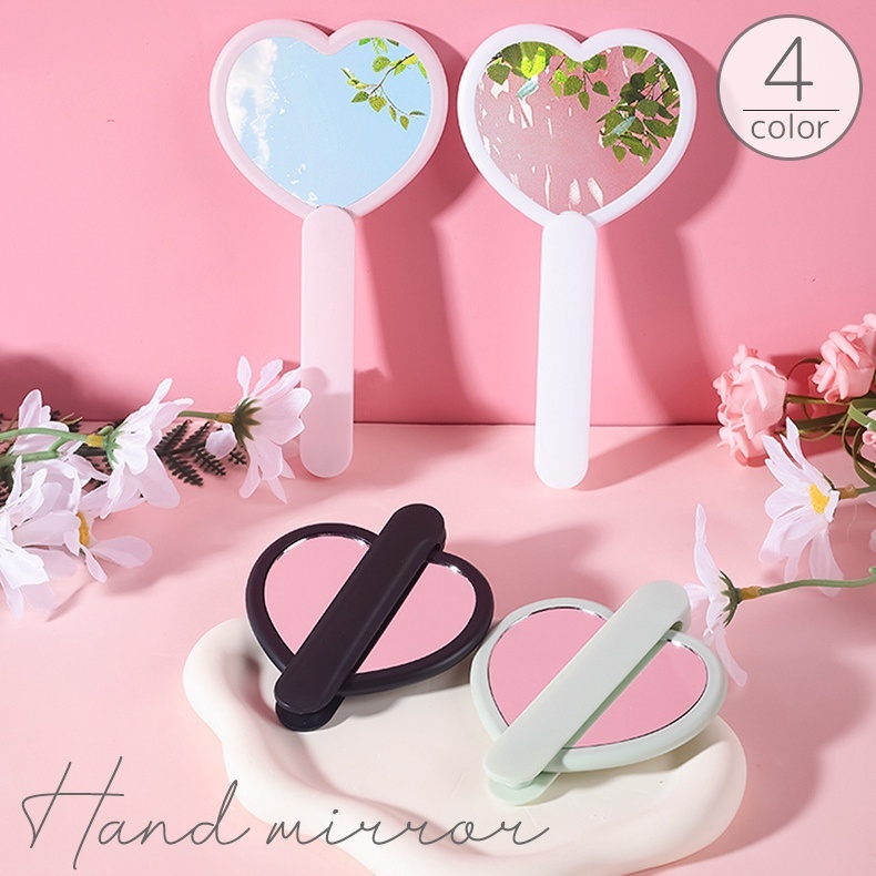 ■手鏡 ハンドミラー 折りたたみ 等倍 柄つき ミニ ハート メイク道具 化粧直し 身だしなみ お手入れ 携帯用 持ち運び 小さめ