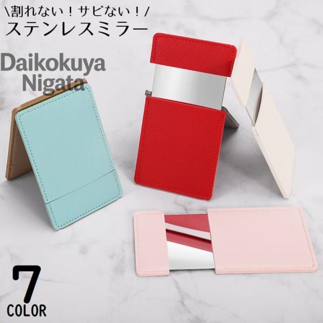 コンパクトミラー ハンドミラー 手鏡 ステンレス PUレザー製収納ケース スクエア メイク 携帯便利 薄型 軽量 ミニ 割れない