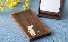 薄くて軽いスタンドミラーは、ウォールナット無垢材で作られた木製の携帯できる手かがみです。猫や犬のモチーフがほしいとのお客様のリクエストで生まれた「ぽちたま」シリーズのスタンドミラーは、色の異なる木や貝殻で模様を表す「象嵌(ぞうがん)」という加飾法で模様がはめ込まれています。 同じ作品であっても、木地の木目や色合いによって一つひとつ表情や風合いは変わります。その表情の違いが模様を生き生きとさせてくれます。特別な方へのお土産、お祝い、出産祝い、結婚祝い、誕生日プレゼント、就職祝い、還暦祝い、成人祝い、記念日にご利用下さい。特典番号:E0301【発送元】有限会社 夢工房