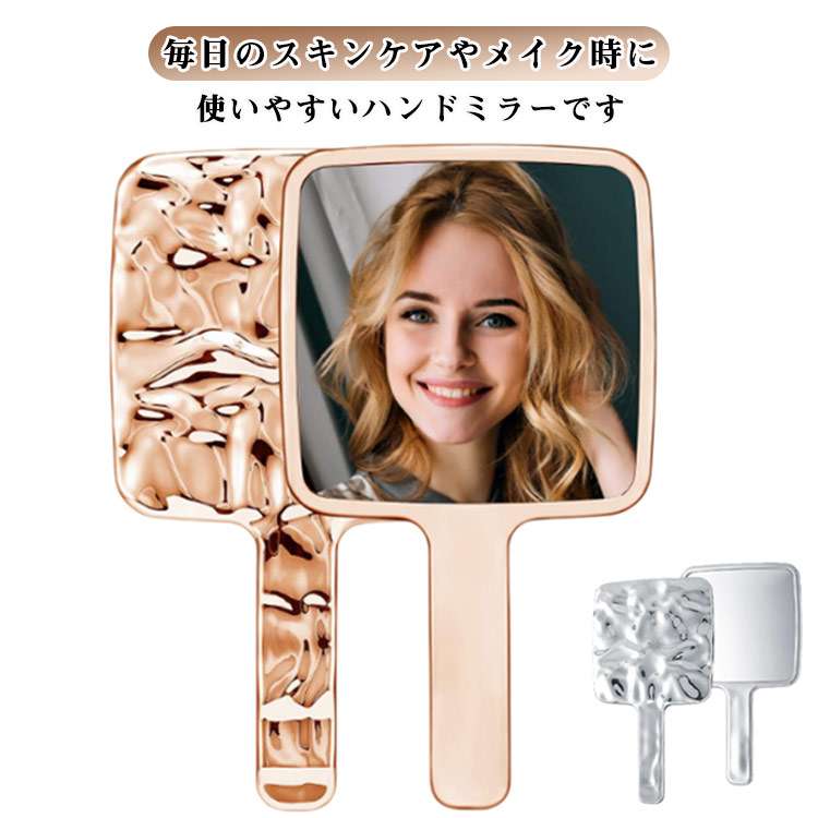 ■ハンドミラー ハンドルミラー ニュアンス風 ゴールド ウェーブ シルバー おしゃれ 化粧鏡 手持ち 四角 メイクアップミラー かわいい 手鏡